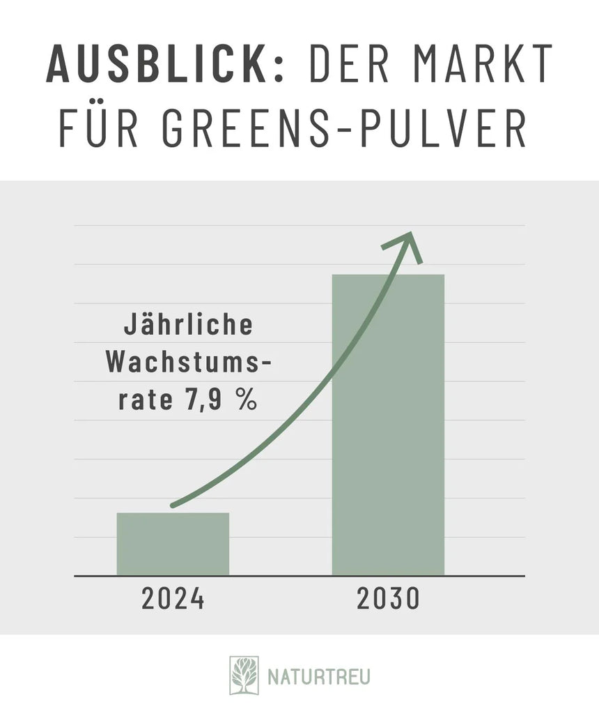 Werfen wir einmal einen Blick in die Zukunft, wird sich dieser Trend vermutlich fortsetzen: Experten gehen davon aus, dass der Markt für das grüne Superfood-Pulver weiterwächst¹⁵.