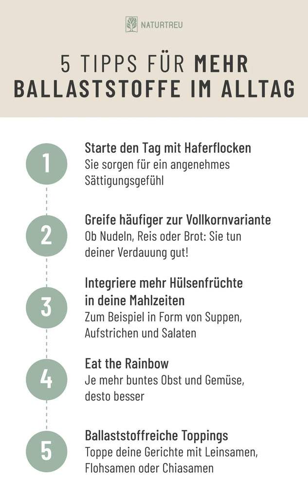 Den unlöslichen Ballaststoffen solltest du deshalb aber nicht weniger Beachtung schenken. Auch sie sind maßgeblich daran beteiligt, deine Verdauung sanft auf Trab zu halten.