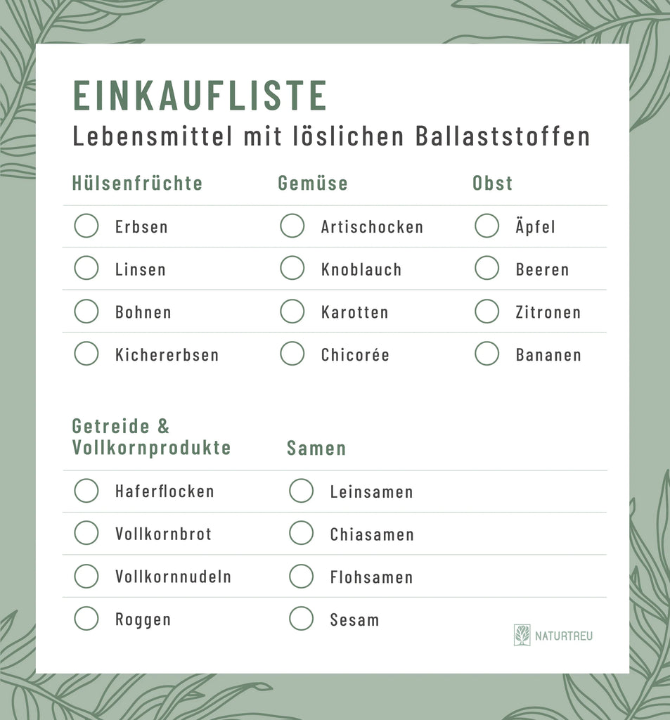 Ballaststoffreiche Ernährung: Lebensmittel mit löslichen Ballaststoffen