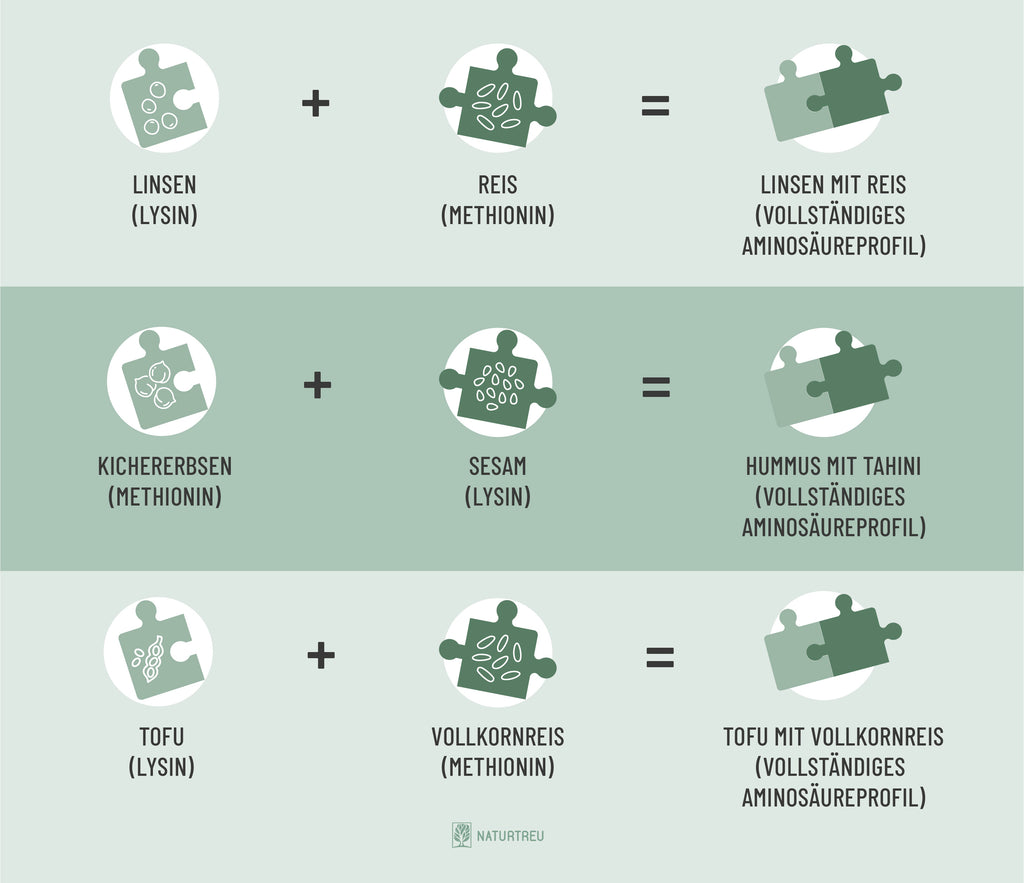 Denn wie bei einem Puzzle fügt sich das eine Lebensmittel perfekt an das andere an – und gemeinsam ergeben sie ein vollständiges Aminosäureprofil.