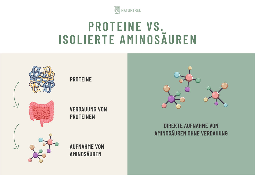 Die Eiweißaufnahme lässt sich durch eine gezielte Lebensmittelauswahl und eine gute Verdauung verbessern. Ausgewogene Mahlzeiten sowie sich Zeit nehmen und in Ruhe essen und kauen, kann helfen.  Auch ein Enzymkomplex wie ENZYMHELDEN von NATURTREU kann wertvoll sein. Es enthält Proteasen, die dabei helfen können, Eiweiß in Aminosäuren zerlegen und so die Aufnahme erleichtern¹⁴.
