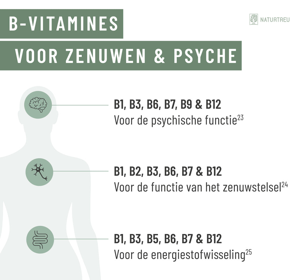 - B-Vitamine für den Energiestoffwechsel⁴², das Nervensystem²⁶ und die psychische Funktion²⁷