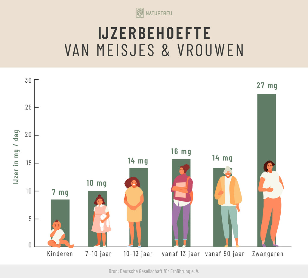 - Eisen für die Bildung von roten Blutkörperchen²³ und die kognitive Funktion²⁴