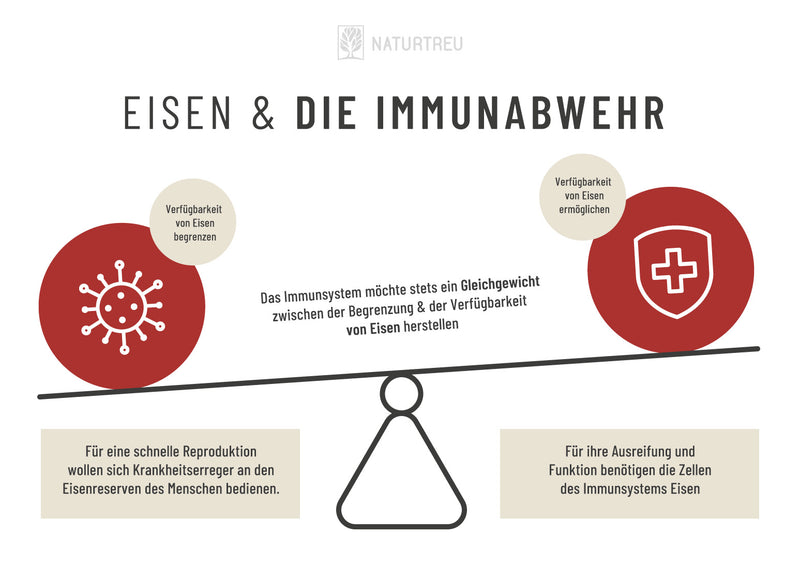 Eisen spielt in zweierlei Hinsicht eine wichtige Rolle für unser Immunsystem⁶.