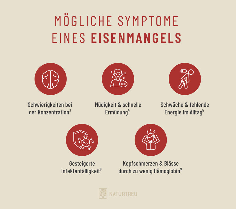 ²⁴ Gesundheitskasse, A.-. D. (2024, July 31). Ursachen und Symptome bei Eisenmangelanämie. AOK - Die Gesundheitskasse. https://www.aok.de/pk/magazin/koerper-psyche/herz-und-kreislauf/ursachen-und-symptome-bei-eisenmangelanaemie