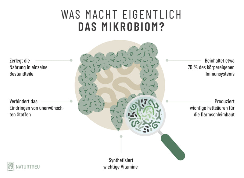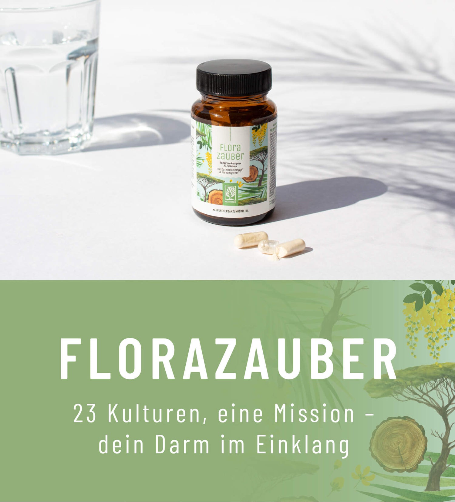 Wie von NATURTREU gewohnt, kannst du dir auch bei unserem FLORAZAUBER sicher sein, dass die Symbiose der einzelnen Inhaltsstoffe von vorne bis hinten durchdacht ist.Aus diesem Grund enthält der exklusive Komplex Akazienfasern, die das Zusammenspiel zwischen vielseitigen Bakterienstämmen und unverzichtbaren Vitaminen abrunden.Im Gegensatz zu den fleißigen Bakterien – die auch als Probiotika bezeichnet werden – sind Akazienfasern Präbiotika.Diese Präbiotika dienen den fleißigen Darmkulturen als Nahrung und tragen damit zu einem Gleichgewicht deines Mikrobioms bei¹³.