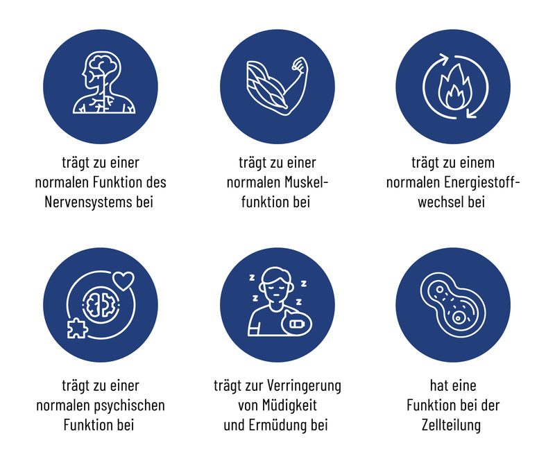 Magnesium trägt zur Verringerung von Müdigkeit und Ermüdung bei¹. Denn du weißt bestimmt, wie man sich nach einer wenig erholsamen Nacht fühlt – müde, antriebslos und erschöpft. Genau hier kommt Magnesium ins Spiel. Das Mineral unterstützt die normale Funktion deines Nervensystems⁶.  Diese Funktion ist notwendig, damit im Schlaf genügend Reize in deinem Körper weitegeleitet werden, die eine ausreichende Durchblutung ermöglichen und dadurch deine Regeneration im Schlaf unterstützen. Nun kannst du dir vorstellen, was passiert, wenn deinem Körper nicht genügend Magnesium zur Verfügung steht.  Die erholsamen Prozesse – die stattfinden, während du schläfst – können nicht optimal ablaufen, weil durch das fehlende Magnesium zu wenig Durchblutung stattfindet. Dadurch werden weniger Nährstoffe transportiert, die erholsamen Reparaturprozesse der Nacht laufen schleppend und du wachst wenig erholt auf.