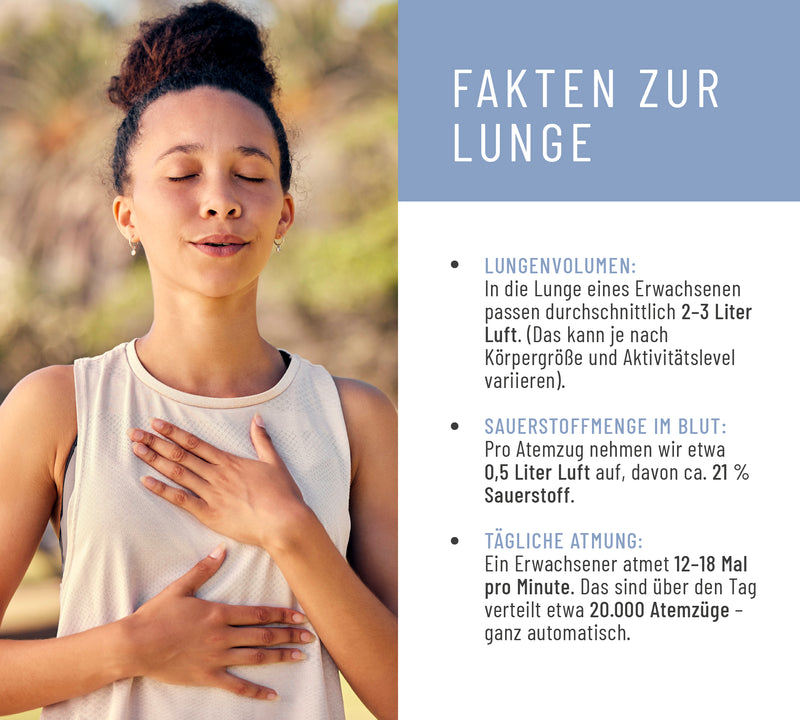 Mit jedem Atemzug strömt etwa ein halber Liter Luft in deine Lunge³ – ohne, dass du darüber nachdenken musst, und deine Lunge arbeitet unermüdlich, um deinen Körper mit lebenswichtigem Sauerstoff zu versorgen⁴.