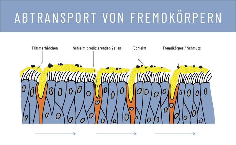 Prinzipiell ist unsere Lunge ein sehr widerstandsfähiges Organ, das auch kurzzeitig anhaltende Belastungen aushalten kann. Dafür verfügt sie über einen natürlichen Schutzmechanismus, bestehend aus winzigen Härchen – den sogenannten Flimmerhärchen – die eingeatmeten Schleim und Schadstoffe abfangen und aus den Atemwegen wieder heraustransportieren³.