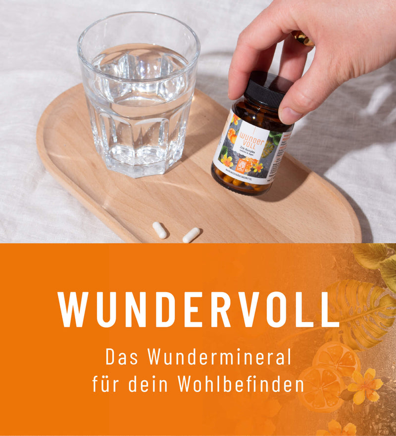 Unser WUNDERVOLL ist damit dein täglicher Begleiter, wenn du deine Beauty-Routine auch von innen unterstützen und die Effekte eines Mangels an Zink verhindern möchtest.