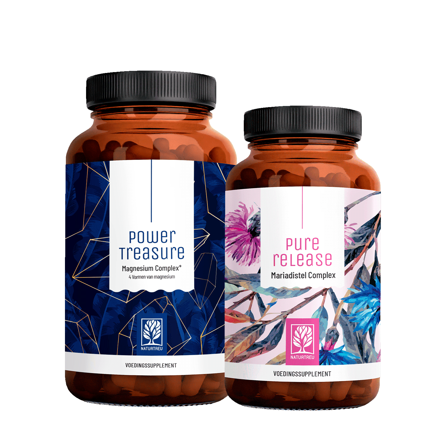 Je lever, je belangrijkste orgaan voor ontgifting, krijgt met ons pakket een dubbele ondersteuning: PURE RELEASE helpt je lever optimaal te laten werken, terwijl POWER TREASURE de vermoeidheid, vaak een teken dat je lever te zwaar belast is⁷, vermindert. Tegelijkertijd helpt het je om voortaan beter voorbereid te zijn op stressvolle situaties².