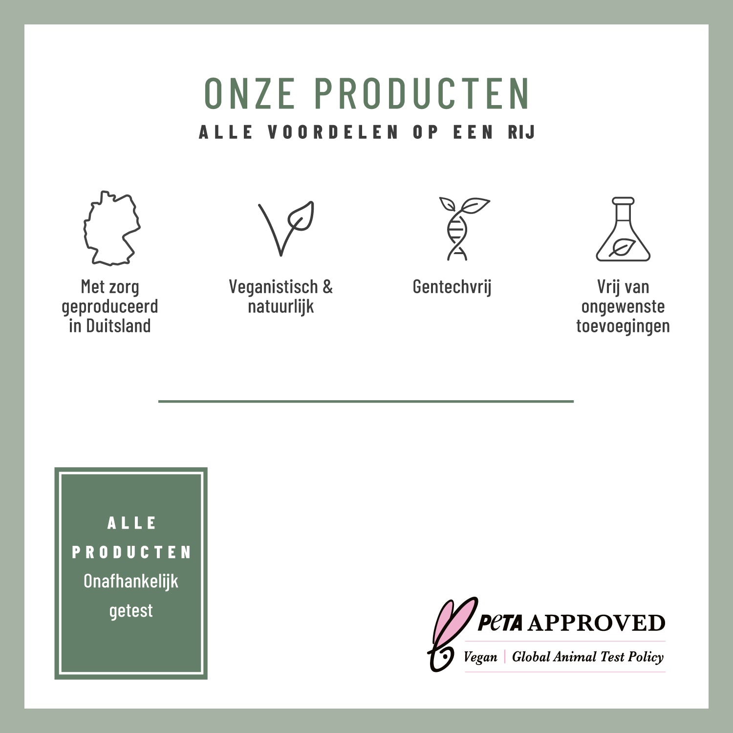 Alle unsere Produkte sind vollständig vegan und ohne Tierversuche hergestellt.
