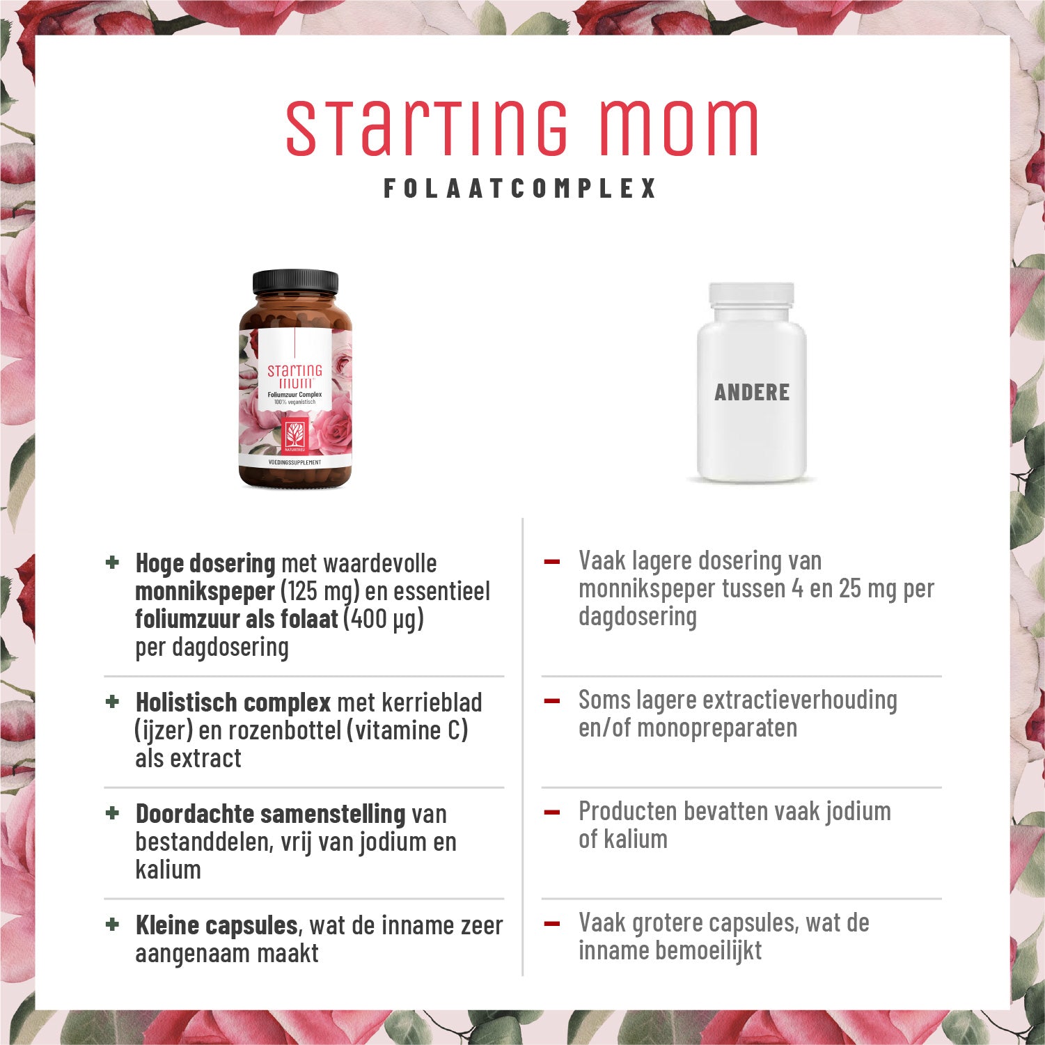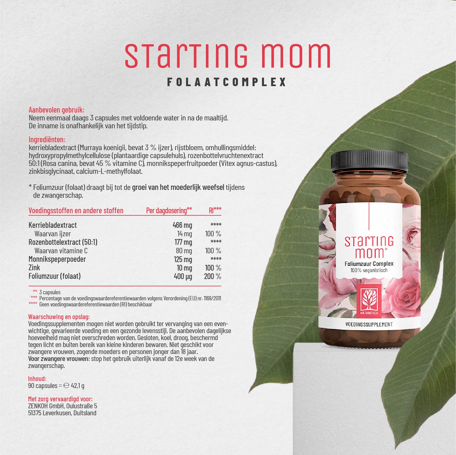STARTING MOM is een complex dat foliumzuur en zink bevat en daarnaast heilzame kruidenextracten.