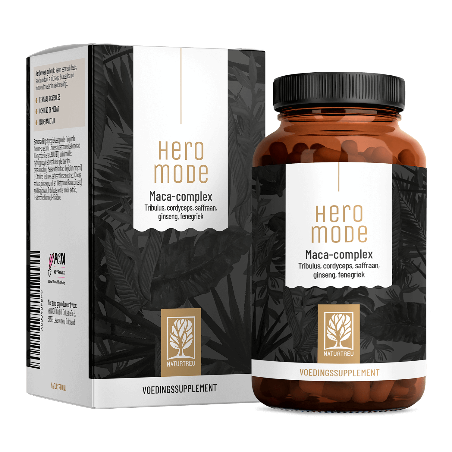 Twee speciale componenten van HERO MODE zijn maca ( Lepidium meyenii Walp. ) en Tribulus Terrestris ( Tribulus Terrestris ). Maca is een knolgewas dat afkomstig is uit de hooglanden van de Peruaanse Andes en wordt beschouwd als een echte superfood. Bijna net zo populair is Tribulus Terrestris: deze kruidachtige plant hoorde al in de jaren ´60⁴ bij de sportvoedingssupplementen van Bulgaarse zwaargewichten.