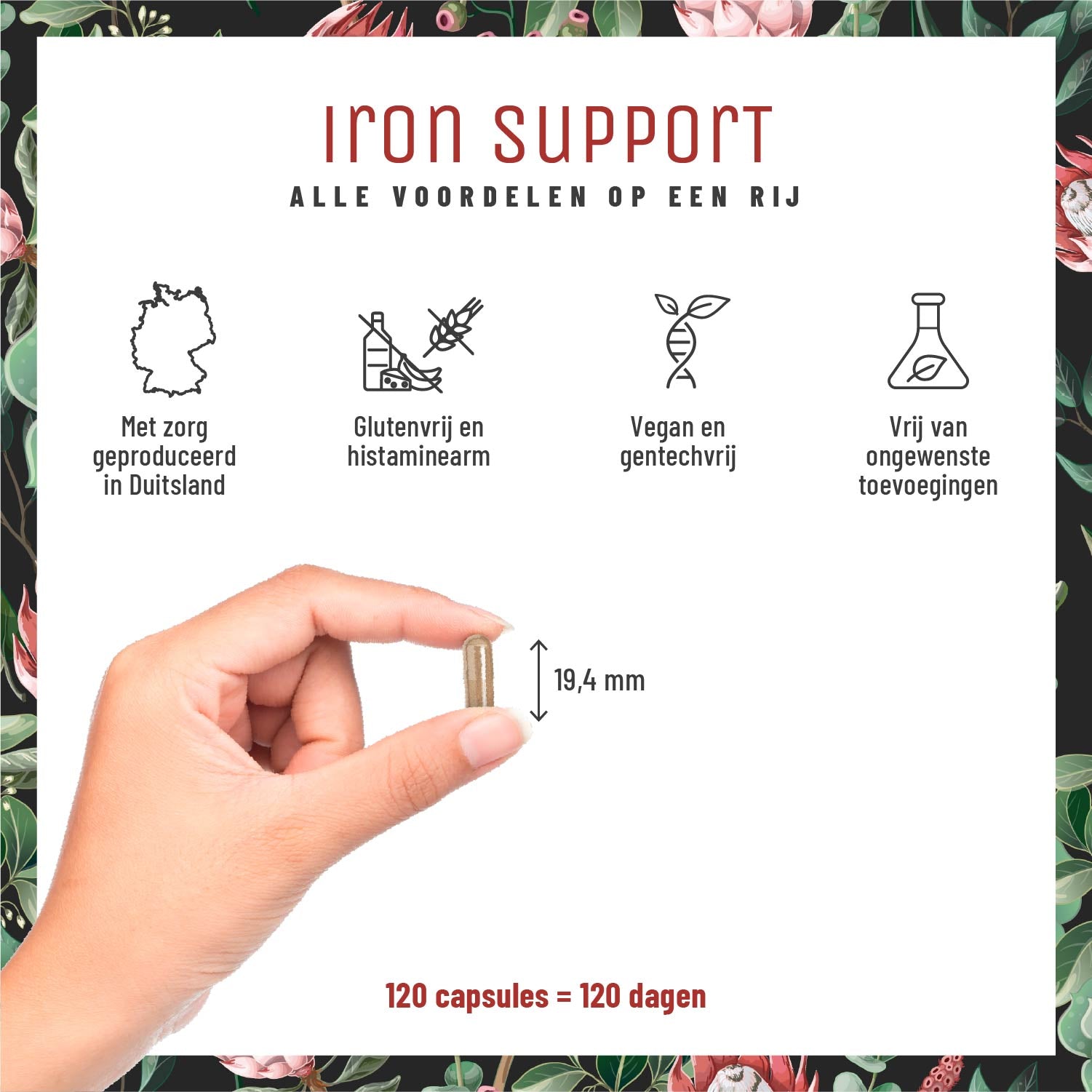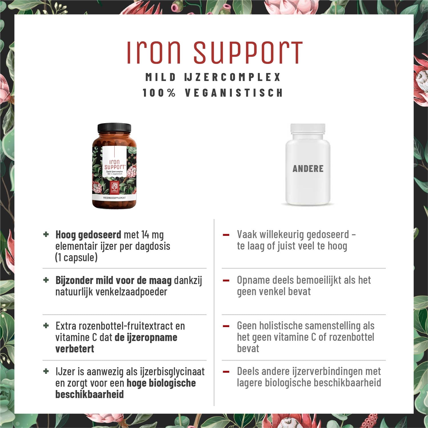 IRON SUPPORT is het ideale supplement voor iedereen die zijn ijzervoorraad op peil wil houden om zo de veel voorkomende symptomen van een tekort, zoals vermoeidheid en moeheid overdag, tegen te gaan.