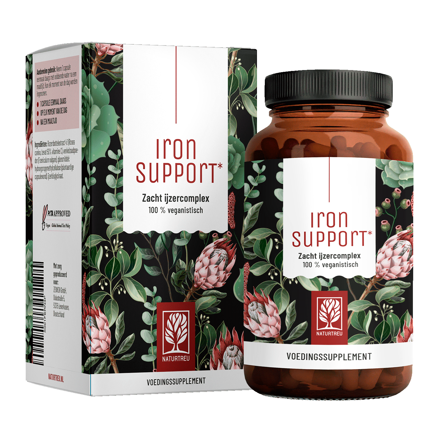 IRON SUPPORT combineert hoogwaardig ijzer met natuurlijk vitamine C uit rozenbottels, dat de opname van ijzer in het lichaam bevordert⁵.